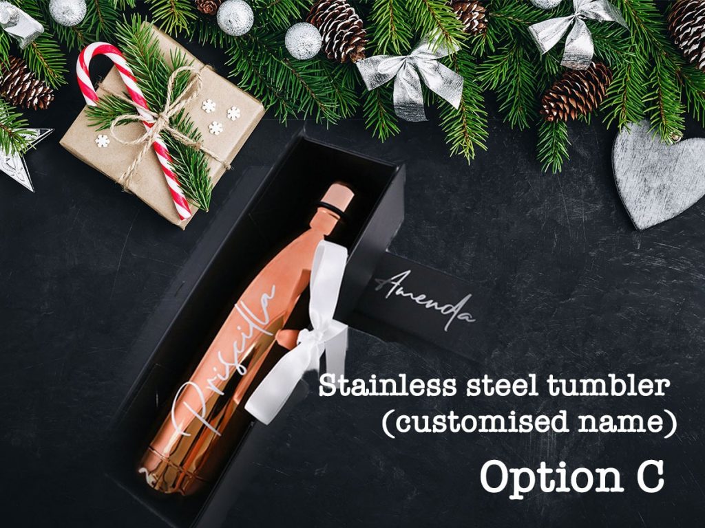 - Option C: Rose Gold Double Wall Stainless Steel Tumbler with Magnetic Box ($30)